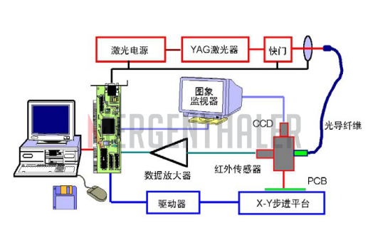 為了監(jiān)測(cè)和控制焊錫的質(zhì)量,先進(jìn)的激光焊錫設(shè)備配備有實(shí)時(shí)溫度檢測(cè)單元,將焊點(diǎn)的溫度通過(guò)紅外傳感器實(shí)時(shí)檢測(cè)出來(lái),模數(shù)轉(zhuǎn)換送入控制計(jì)算機(jī),通過(guò)溫度的變化情況監(jiān)測(cè)焊點(diǎn)的形成過(guò)程,或?qū)崟r(shí)改變激光功率控制焊點(diǎn)的形成和質(zhì)量。溫度上升過(guò)快時(shí),可立即切斷激光輸出,保證不燒毀器件的引線。圖象監(jiān)視器可以觀察激光與引線的為位置情況以及焊接的過(guò)程,可對(duì)焊錫過(guò)程錄像或拍照。激光器的輸出功率由控制計(jì)算機(jī)設(shè)定并可程序控制,保證加熱能量的精確性。