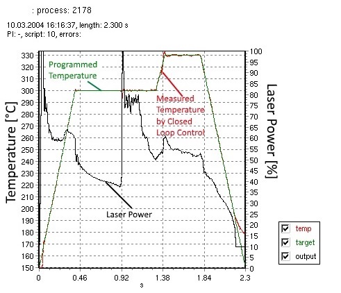 Mergenthaler激光模組可以實現(xiàn)溫度閉環(huán)控制,測溫單元可以在每秒最多檢查 10000次事實溫度,系統(tǒng)可以根據(jù)實測溫度的變化來實時改變激光功率,每秒可以最多反應5000次。從而實現(xiàn)優(yōu)良的焊接控制。