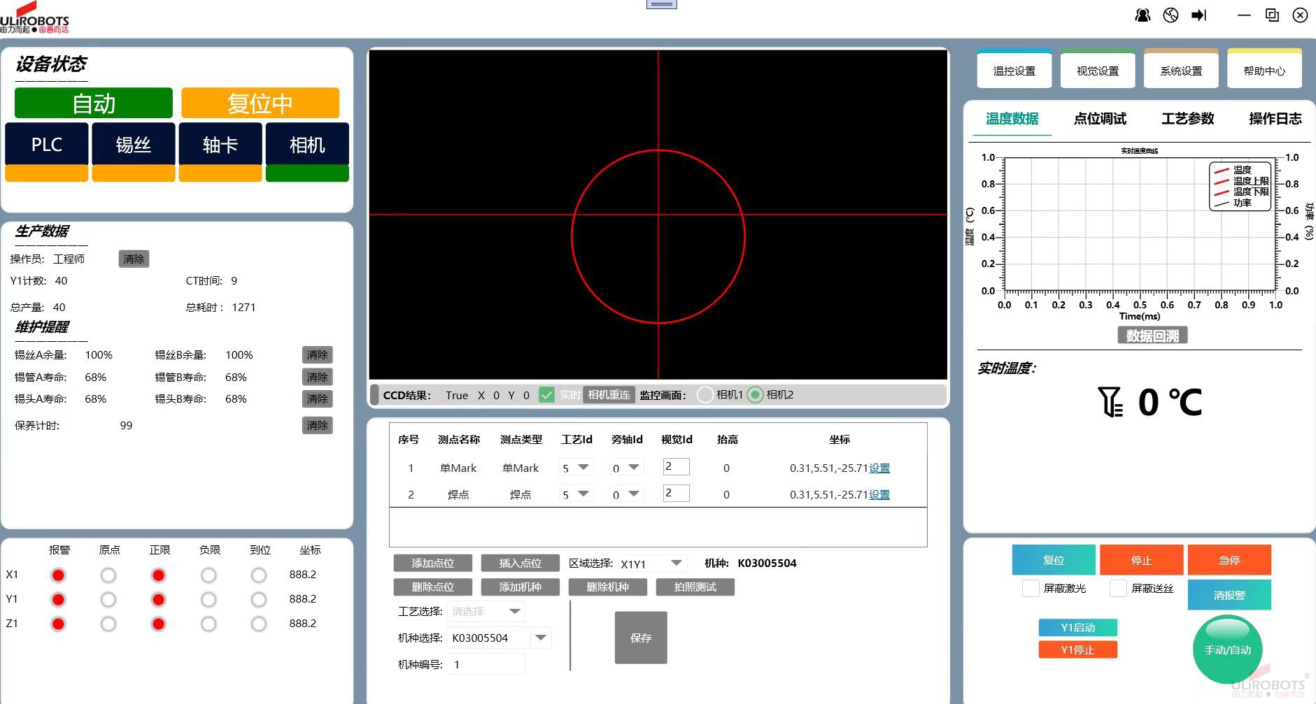 壓縮空氣壓力:高精度送錫絲模組對壓縮空氣壓力的敏感度極高,壓力波動>±0.05MPa 時,送錫電機的驅(qū)動力會出現(xiàn)偏差,導(dǎo)致送錫量誤差增大。ULiLASER 將壓縮空氣壓力穩(wěn)定在 0.4-0.6MPa,并通過軟件算法對送錫量進行動態(tài)補償 —— 當壓力瞬間降低時,軟件自動提升電機扭矩,確保送錫精度仍能控制在 ±0.01mm 以內(nèi),有效避免因氣源波動導(dǎo)致的焊錫量異常。?