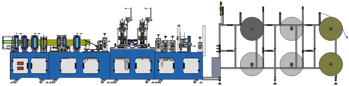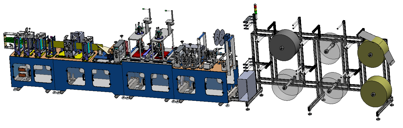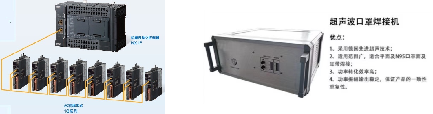 自動送料、超聲波滾焊、自動裝鼻梁條、耳帶超聲波焊接、自動對折、超聲波封邊、自動模切