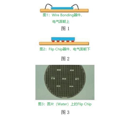 事實(shí)上,倒裝芯片之所以被稱為“倒裝”,是因?yàn)榕c傳統(tǒng)的金屬線鍵合連接方式相比(Wire Bonding)這與激光球種植后的過(guò)程有關(guān)。傳統(tǒng)的芯片電表面通過(guò)金屬線鍵合連接到基板上(圖1),而倒置芯片的電表面向下(圖2),相當(dāng)于將前者翻轉(zhuǎn),因此稱為“倒置芯片”。在圓圈中(Wafer)上芯片植球后(圖3),需要翻轉(zhuǎn),送到貼片機(jī)上方便貼裝,也因?yàn)檫@個(gè)翻轉(zhuǎn)過(guò)程被稱為“倒裝芯片”。