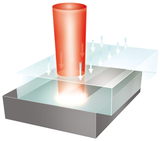 激光塑料焊接原理:激光束穿透上層透光材料,到達(dá)下層吸光材料表面,將激光能轉(zhuǎn)化為熱能,使其表面熔化。同時(shí),熱量從底部傳遞到與其壓接的上層透光工件的接觸面,使其融化,從而實(shí)現(xiàn)激光熱熔焊接。這一點(diǎn)在焊接過(guò)程中通過(guò)各種質(zhì)量控制方法得到了大量驗(yàn)證。