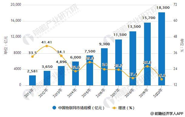 2011-2020年中國物聯(lián)網(wǎng)市場規(guī)模統(tǒng)計及增長情況預測