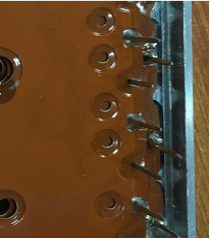 3層銅板+1層PCB板焊接,下面3層銅板(18焊點(diǎn))+PCB板(18焊點(diǎn))均采用點(diǎn)焊。