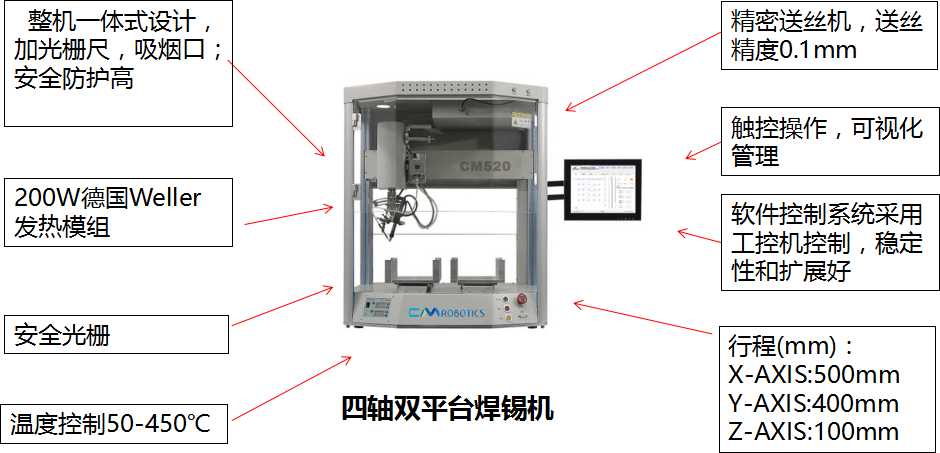 D、溫度效率高,能在短時間達(dá)到溶錫的狀態(tài),適應(yīng)喊錫機(jī)器人快速焊接的生產(chǎn)節(jié)拍要求。